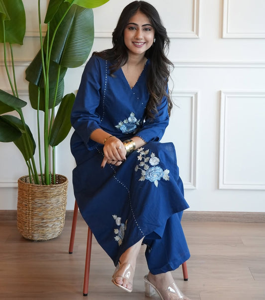 Pure Khadi Cotton Kurta Pant Co-ord With Schiffli and Thread Work