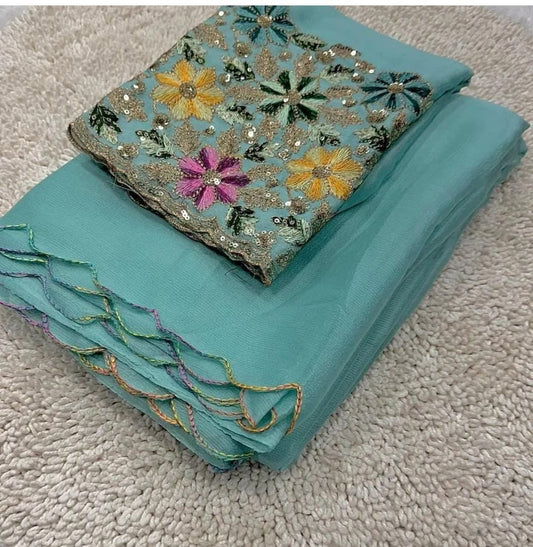 Stunning Premium Faux Georgette Saree With Sequins & Thread Embroidery Work