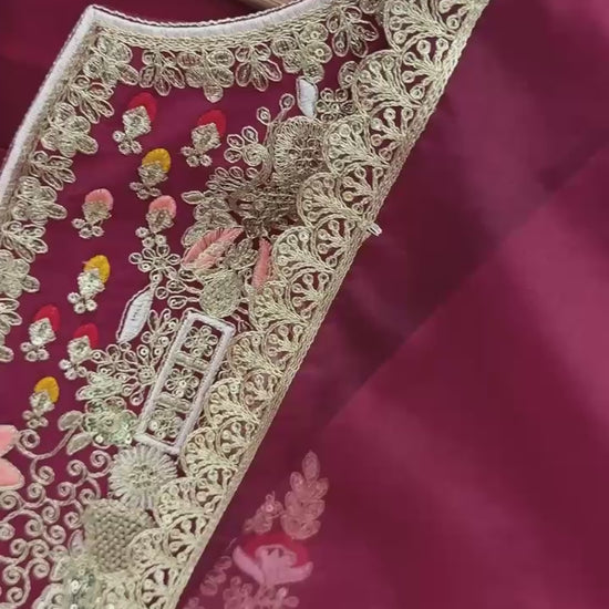 ✅ Top Fabric : Pure Natural Satin Silk With Embroidery 3 mm Sequence & Coding Dori Work With Sleeves