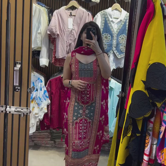 New Designer Print Heavy Natural Silk Hand Work Salwar Suit