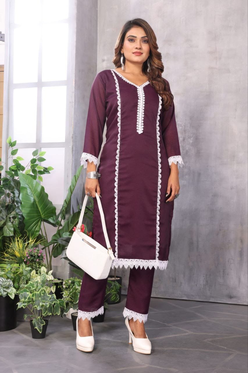 New Soft Star Georgette Salwar Suit With Embroidery & Lace Work Kurta & Pant