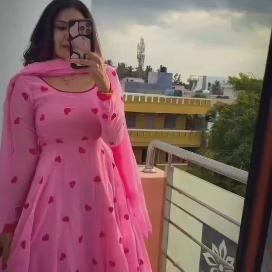 Crafted from luxurious georgette silk, the fabric offers a rich texture with a soft sheen, making it perfect for festive occasions, weddings, or special celebrations. The matching dupatta with delicate lace accents adds the perfect finishing touch to this stunning ensemble.