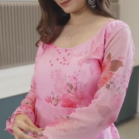 Pure Soft Lightweight Organza Floral Print Umbrella Gown Style Suit Set