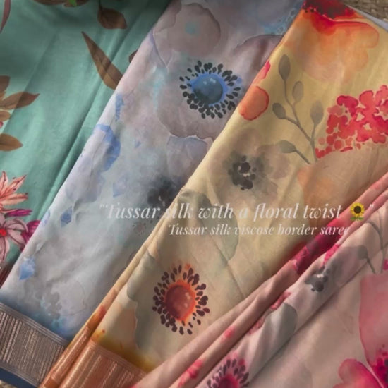 Pure Tussar Silk Floral Print Saree With Viscose Border