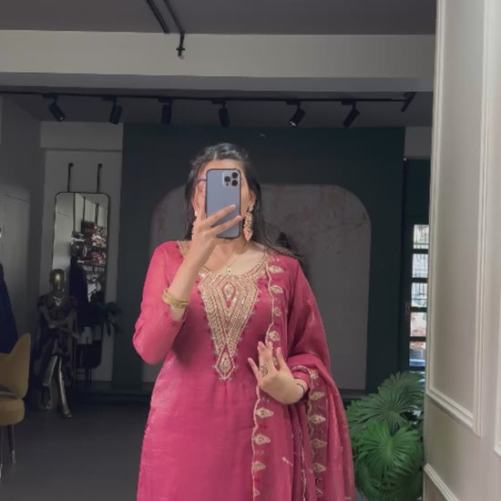 ♥️ Elevate your ethnic wardrobe with this premium Silver Glory (Crunchy) kurti pant set, designed with exquisite thread embroidery and shimmering sequin work. Crafted for elegance and comfort, the designer kurti is paired with perfectly tailored pants and a matching dupatta, making it an ideal choice for festive wear, party wear, and wedding occasions. This stylish ethnic suit set blends traditional craftsmanship with modern charm—perfect to make you stand out gracefully at any celebration.