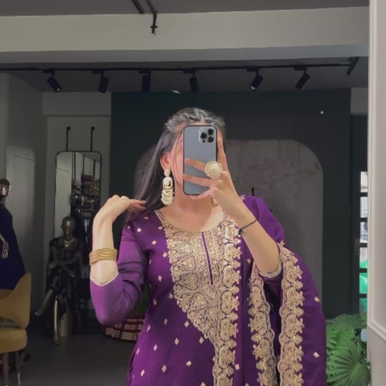 ♥️ Crafted from luxurious Vichitra silk, this ethnic dress is beautifully adorned with delicate thread embroidery and shimmering sequins. Designed for elegance and comfort, it offers a timeless festive look, making it an ideal choice for weddings, parties, and special celebrations.