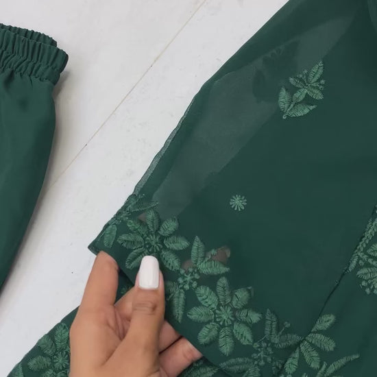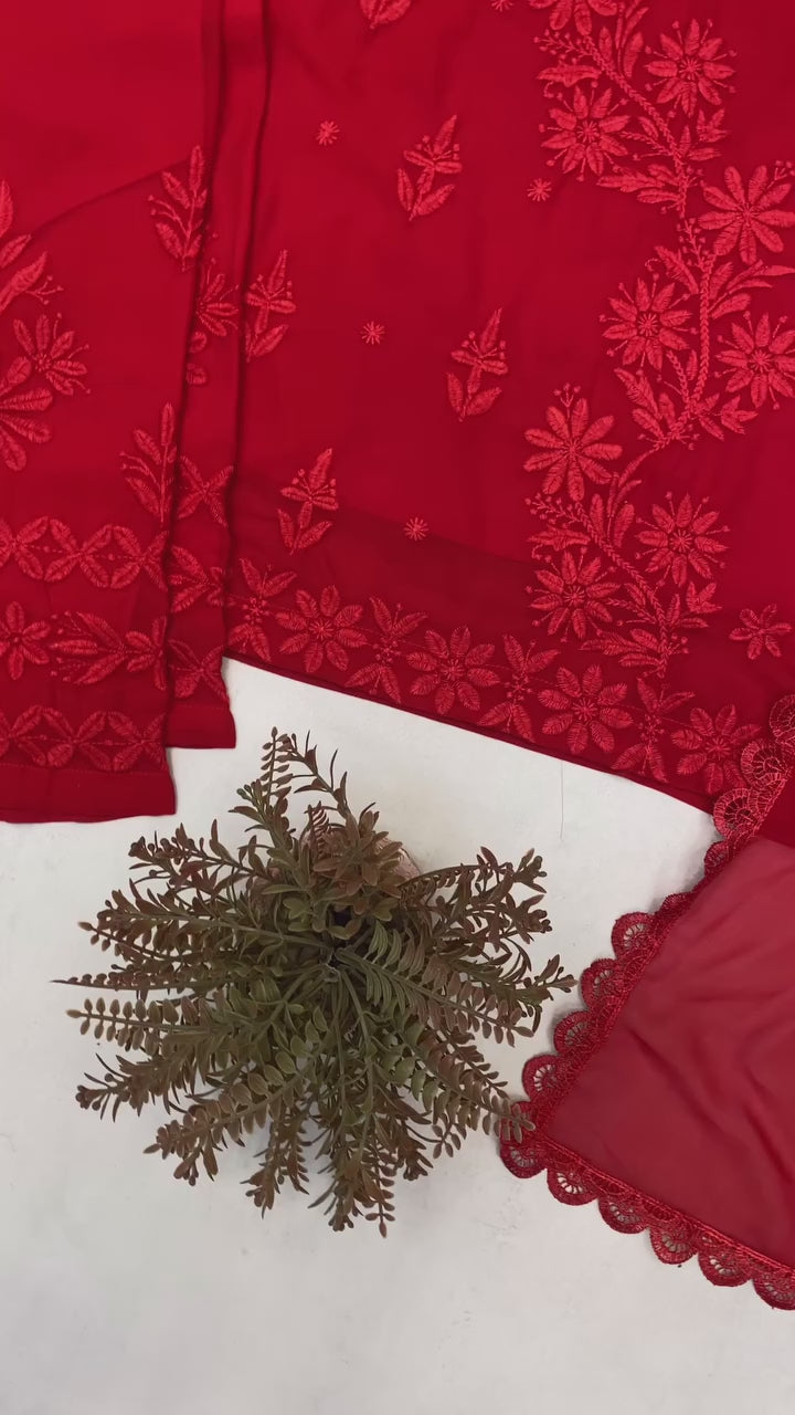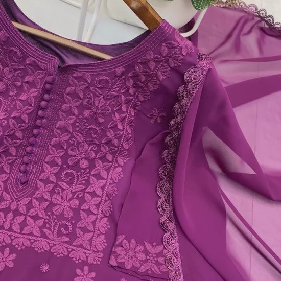♥️ Crafted from lightweight and flowy fox georgette, this elegant set showcases intricate Chikankari embroidery enhanced with delicate lace work for a graceful finish. The kurti is paired with matching pants for a seamless look, while the soft, coordinated dupatta adds a touch of sophistication. Perfect for festive gatherings, cultural events, and special occasions, this ensemble blends traditional artistry with modern style for a timeless appeal.