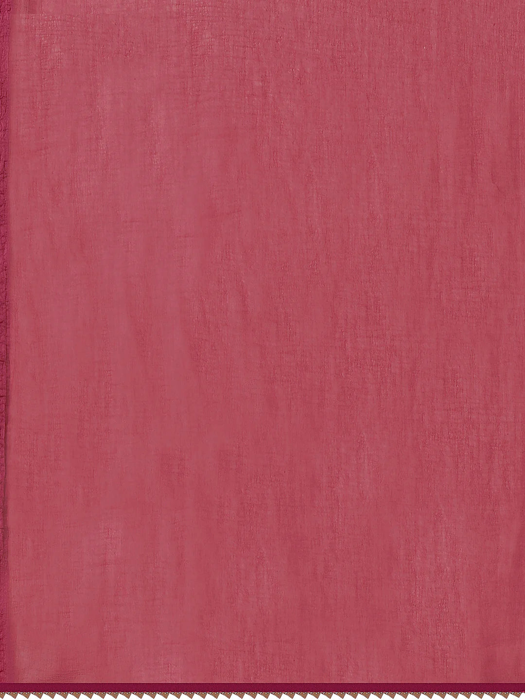 Women's Pink Ethnic Motifs Printed Cotton Kurta Pant With Dupatta
